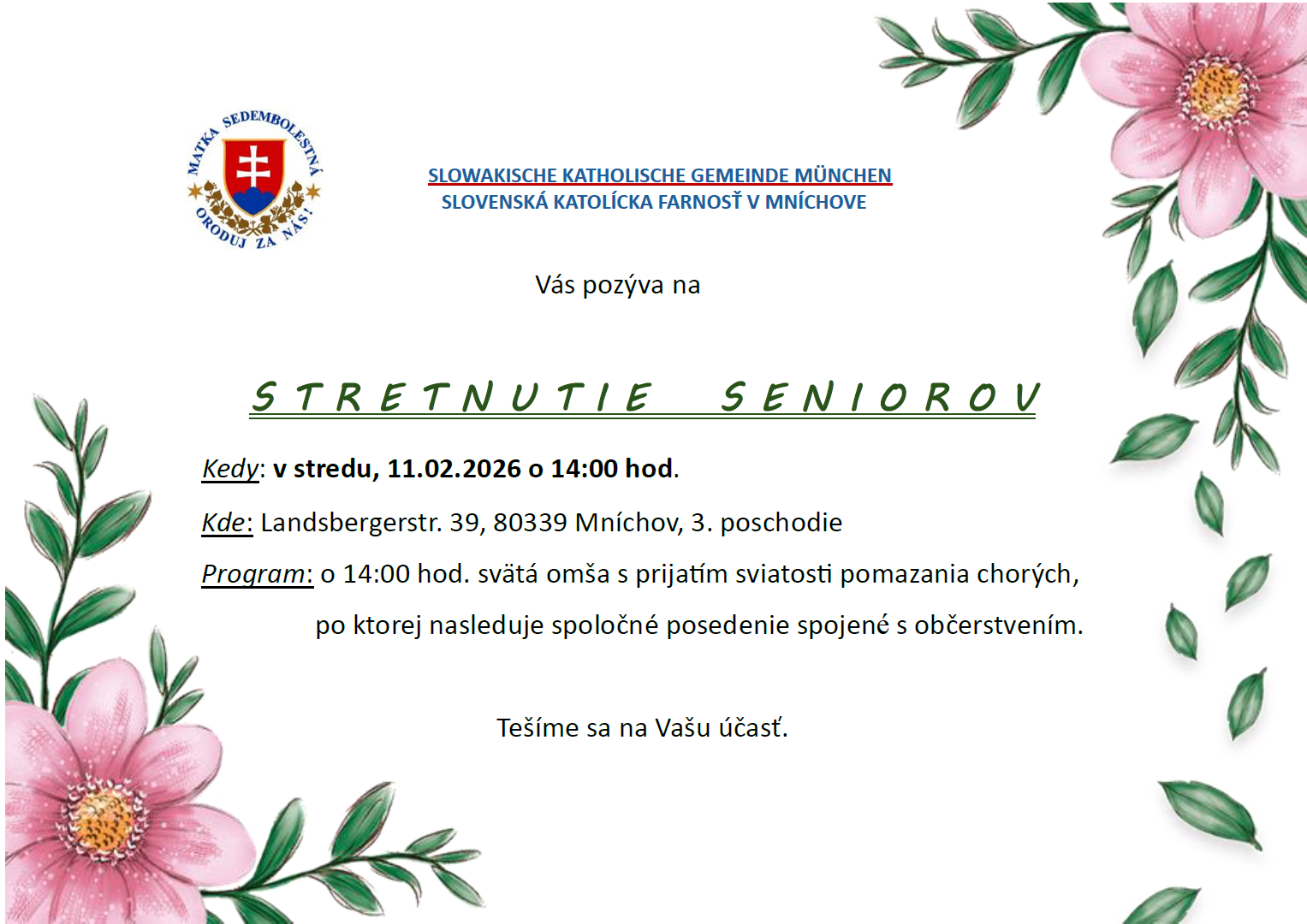 v piatok, 06.02.2026 Prvý piatok v mesiaci