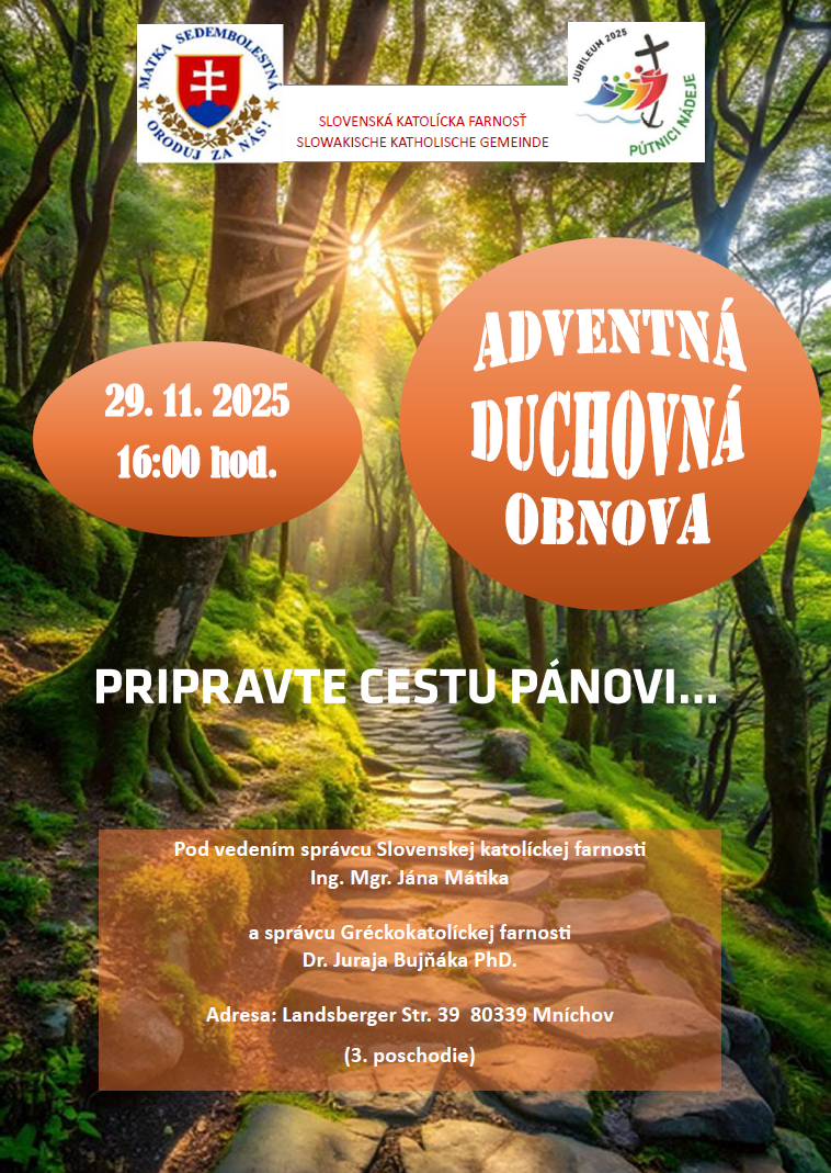 16:00 - Adventná duchovná obnova - na fare (SKF)/misii v Mníchove.