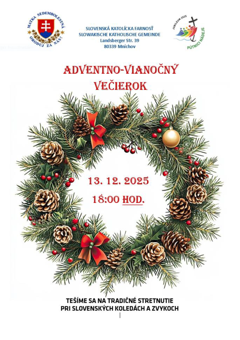 v sobotu, 13.12.2025 - Adventno-vianočný večierok